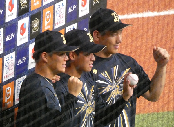 吉田正尚と山本由伸に挟まれ、初のお立ち台。